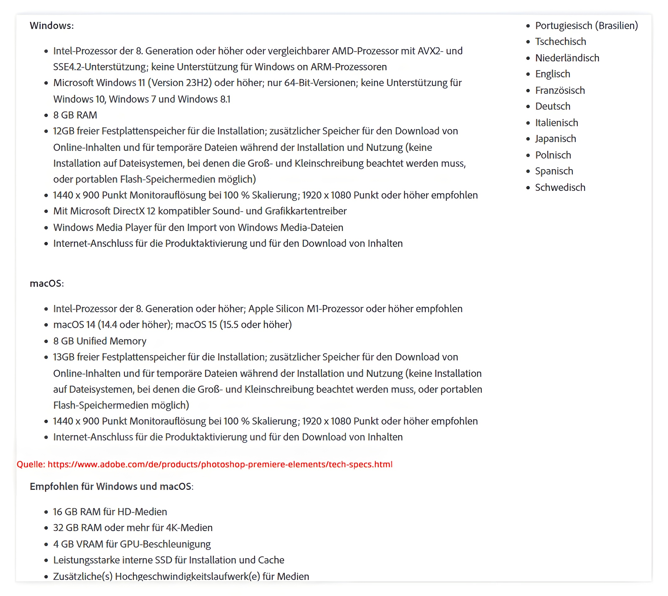 Features von Adobe Premiere Elements 2026: