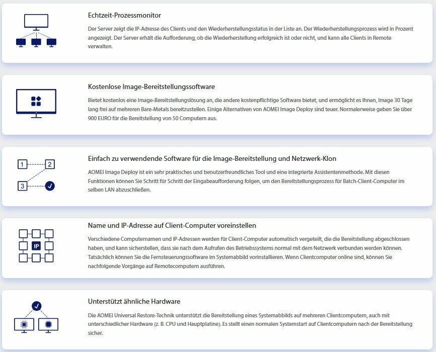 ✔️Netzwerkbasierte Bereitstellung: Nutzen Sie Ihr vorhandenes Netzwerk, um Systemabbilder effizient zu übertragen.