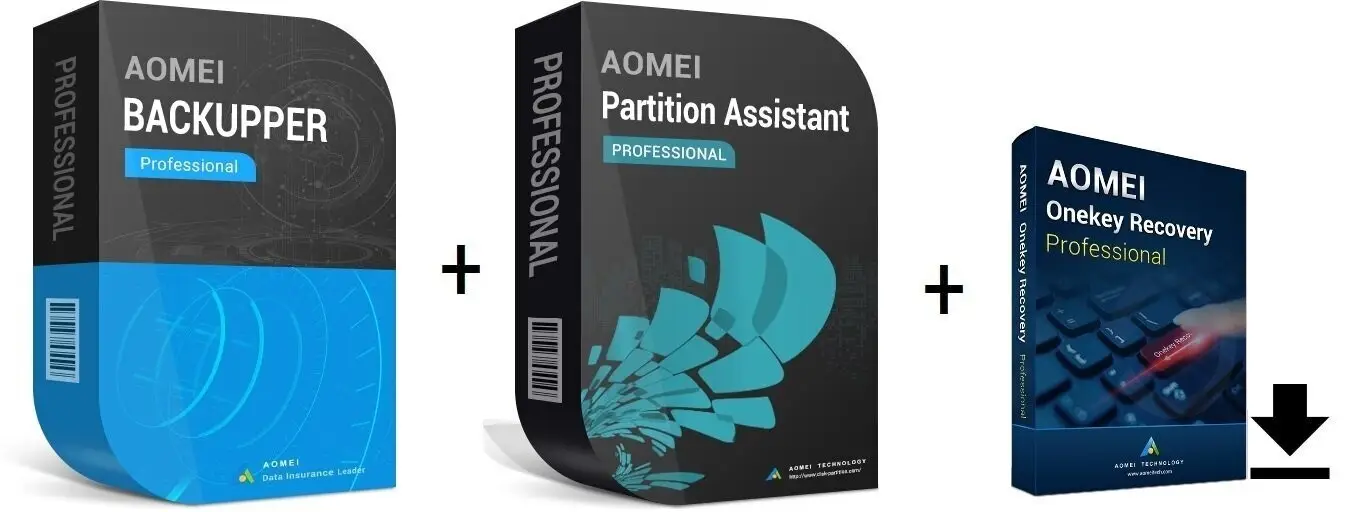 - Enthält: AOMEI Backupper (2 PCs) + Partition Assistant (2 PCs) + OnkeyRecovery Professional (1 PC).
