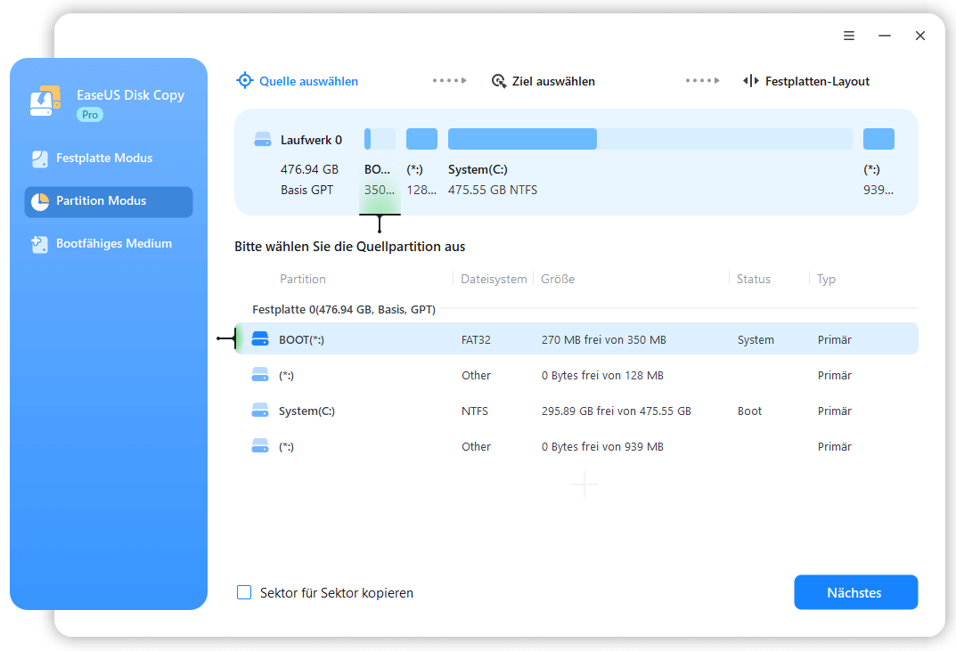 ✔️Partitionstransfer: Verschieben oder kopieren Sie Partitionen mühelos auf ein neues Laufwerk.
