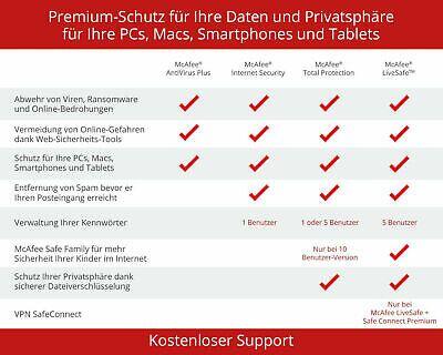 ✔️Kundensupport: Erhalten Sie Unterstützung durch den McAfee-Support, um sicherzustellen, dass Ihre Sicherheitsfragen und Probleme schnell und effizient gelöst werden.