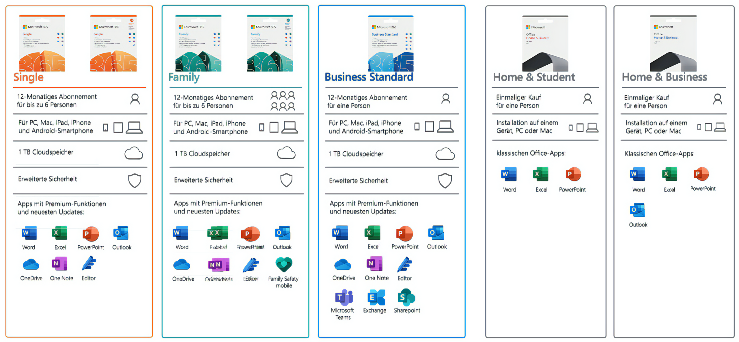 - Microsoft 365 Single, bisher Office 365, (nicht kommerziell)