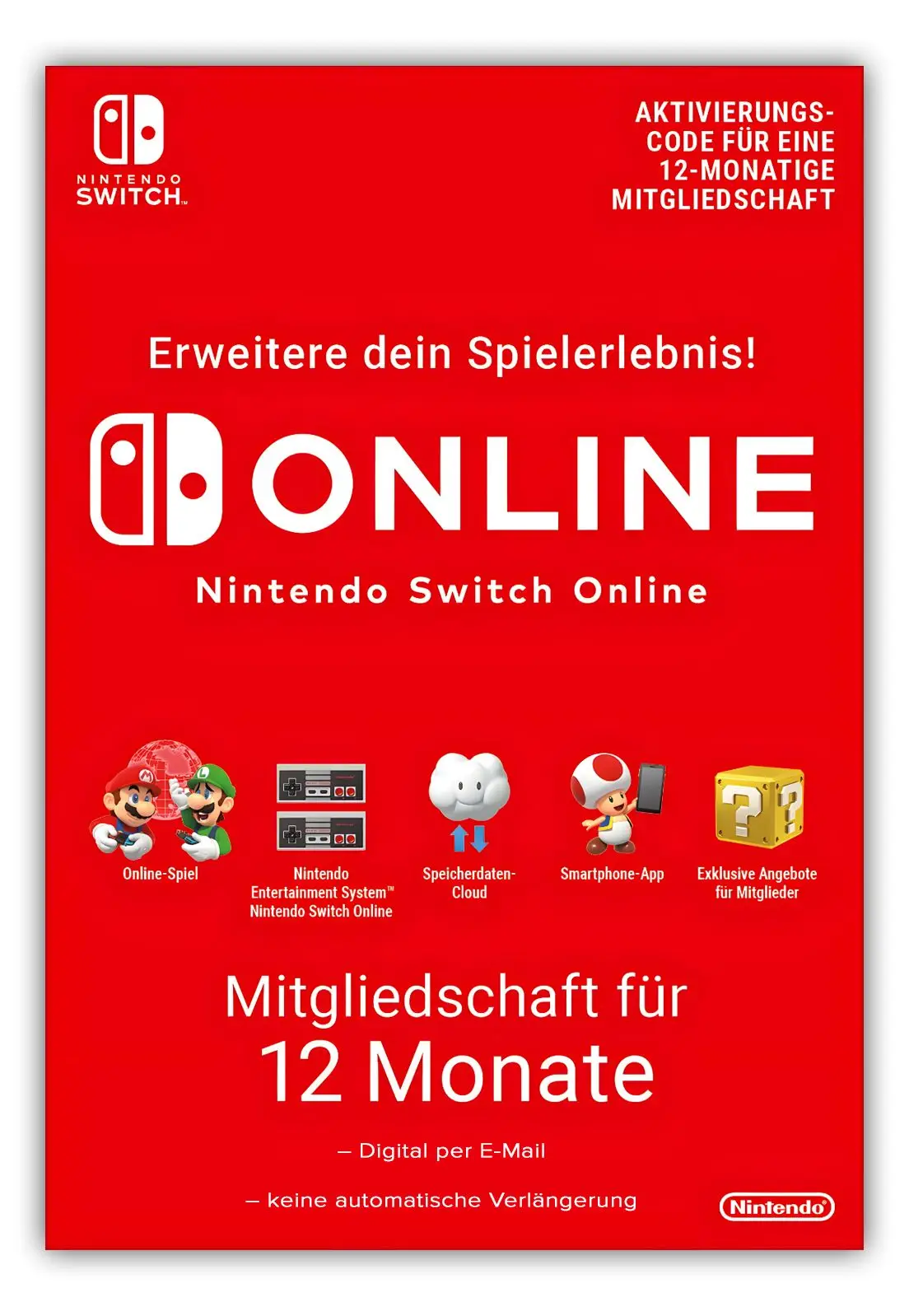 • Nintendo Switch Online-Mitgliedschaft Gutscheincode | Prepaid-Abo (einmalige Zahlung)